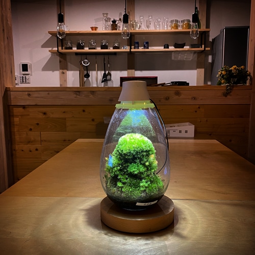 コケ植物とLED照明を組み合わせたテラリウムで、自然光があたらない場所でも、