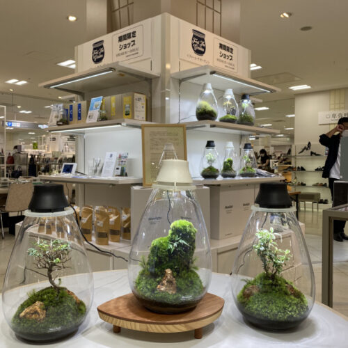 お問い合わせフォーム お見積り兵庫県宝塚市の陽春園パルコジョキMosslight会場で実施。(Mosslight容器、植物、石、土がついています)
