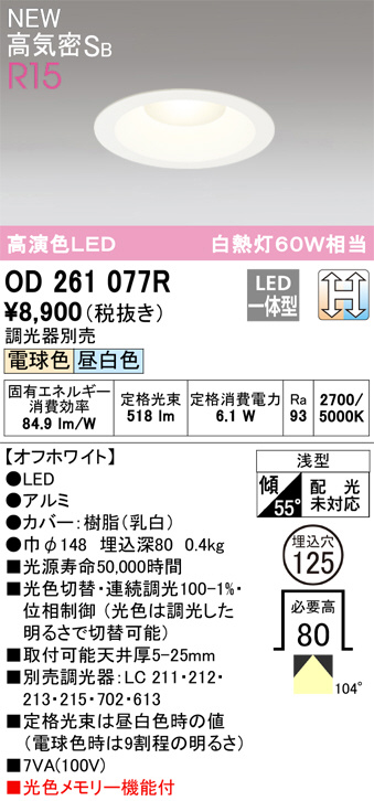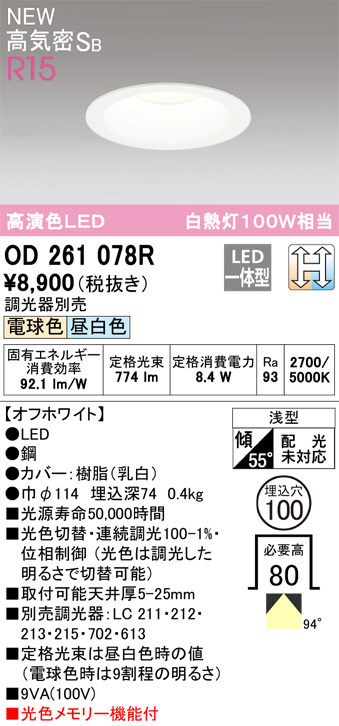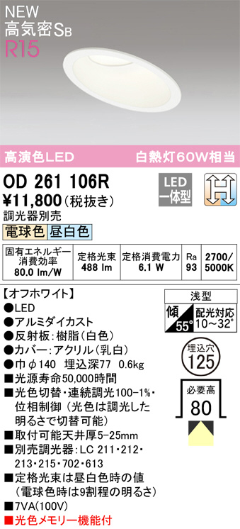 OD361473WDR オーデリック LEDダウンライト ランプ別梱包 (代引き不可)