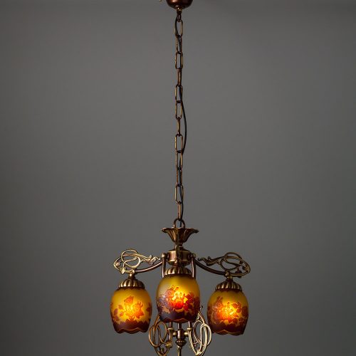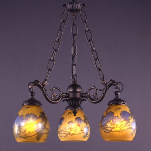 アールヌーボー/ガレ風チェーン吊り3灯シャンデリア AGL-11AB/3-63