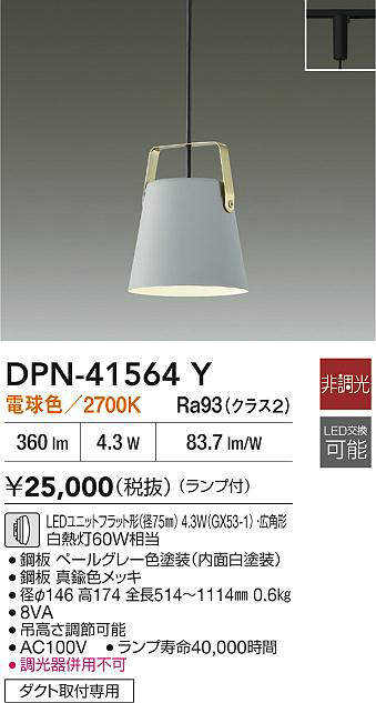 DPN-41564Y 大光電機 ペンダント (ランプ付)