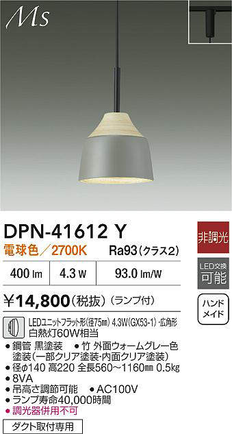 DPN-41612Y 大光電機 ペンダント (ランプ付)