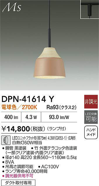 DPN-41614Y 大光電機 ペンダント (ランプ付)