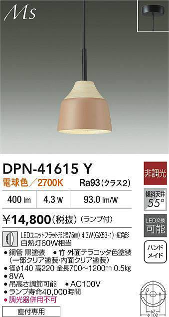 DPN-41615Y 大光電機 ペンダント (ランプ付)