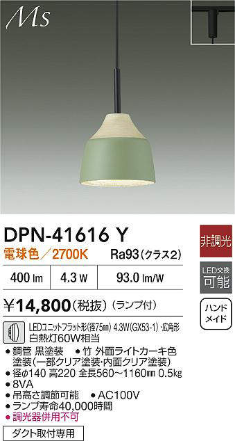 DPN-41616Y 大光電機 ペンダント (ランプ付)