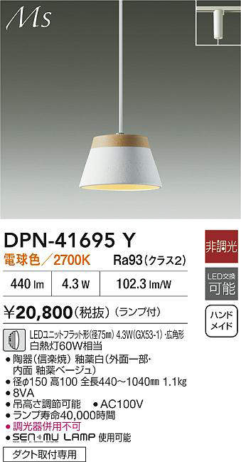 DPN-41695Y 大光電機 ペンダント (ランプ付)
