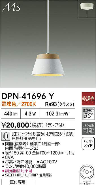 DPN-41696Y 大光電機 ペンダント (ランプ付)