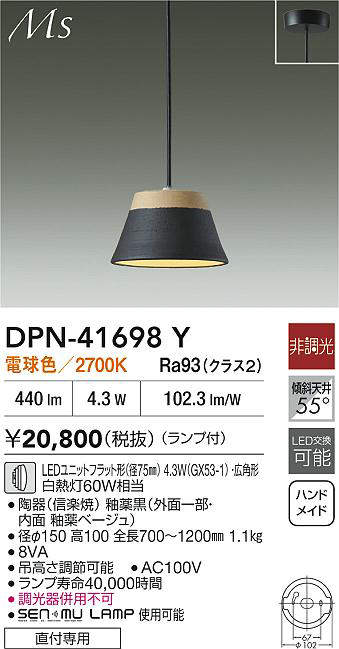 DPN-41698Y 大光電機 ペンダント (ランプ付)