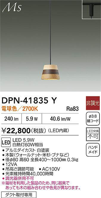 DPN-41835Y 大光電機 ペンダント (LED内蔵)