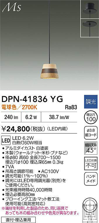 DPN-41836YG 大光電機 ペンダント (LED内蔵)