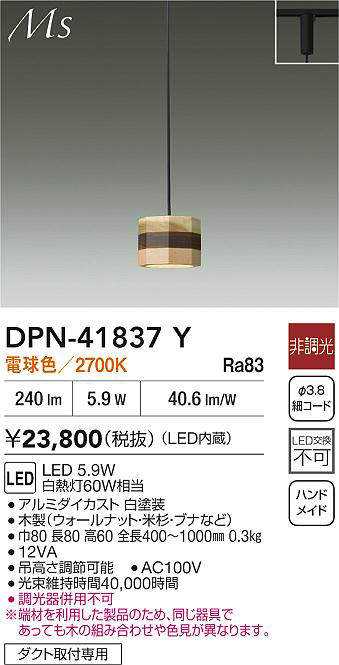 DPN-41837Y 大光電機 ペンダント (LED内蔵)