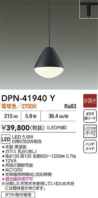 DPN-41940Y 大光電機 ペンダント (LED内蔵)