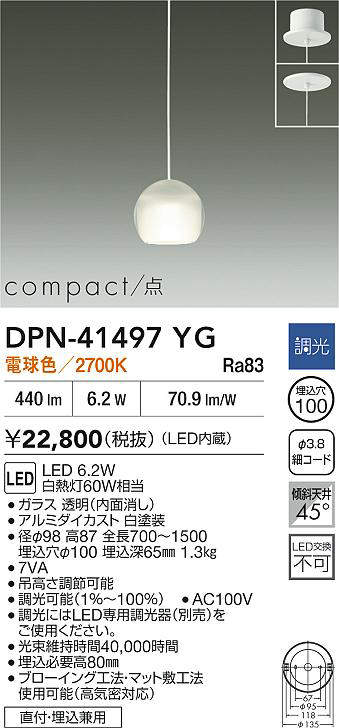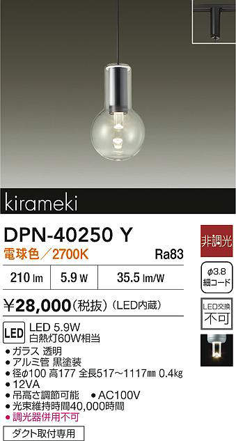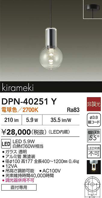 DPN-40251Y 大光電機 ペンダント (LED内蔵)