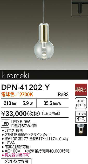 DPN-41202Y 大光電機 ペンダント (LED内蔵)