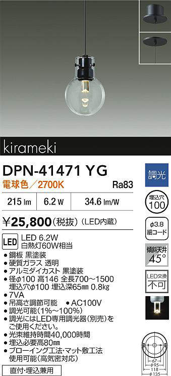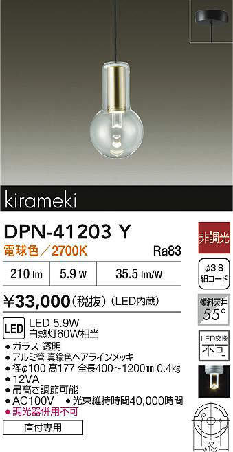 DPN-41203Y 大光電機 ペンダント (LED内蔵)