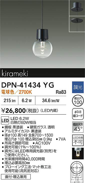 DPN-41434YG 大光電機 ペンダント (LED内蔵)
