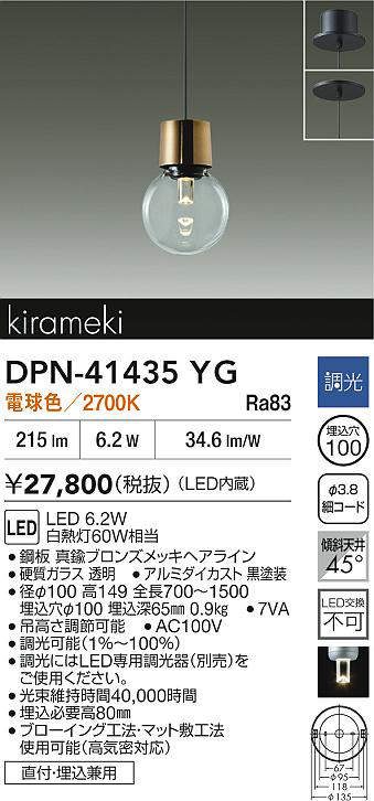 DPN-41435YG 大光電機 ペンダント (LED内蔵)