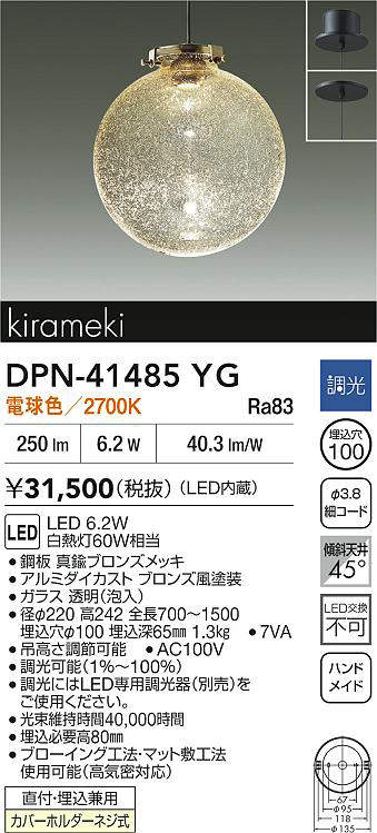 DPN-41485YG 大光電機 ペンダント (LED内蔵)