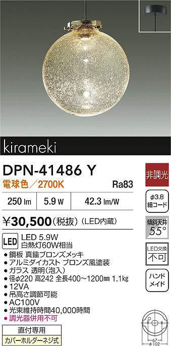 DPN-41486Y 大光電機 ペンダント (LED内蔵)