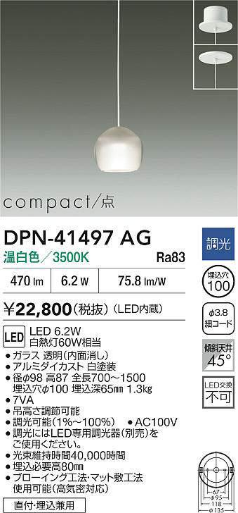 DPN-41497AG 大光電機 ペンダント (LED内蔵)