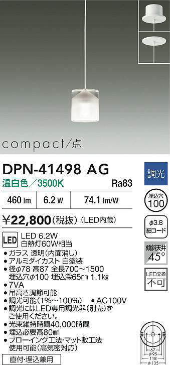 DPN-41498AG 大光電機 ペンダント (LED内蔵)