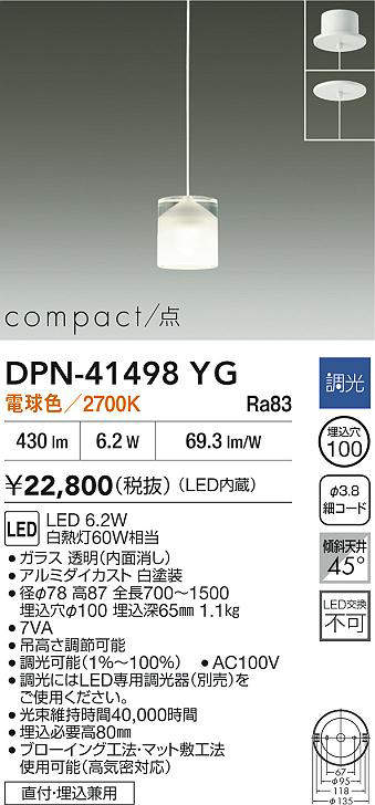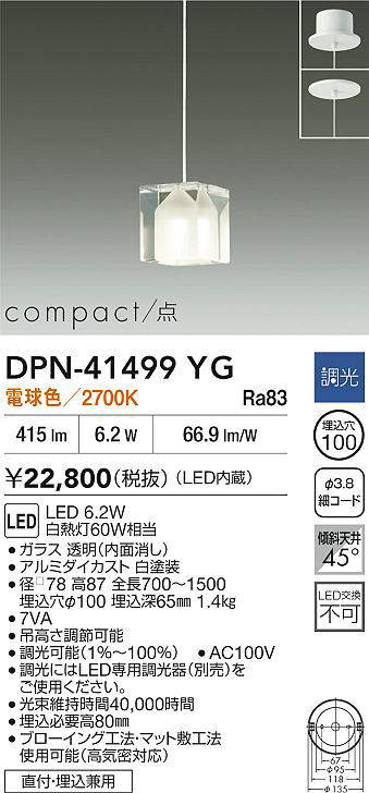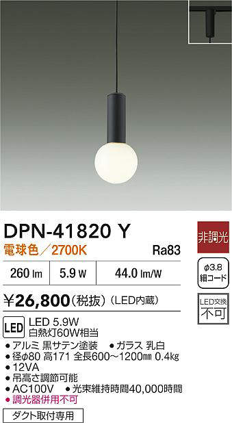 DPN-41820Y 大光電機 ペンダント (LED内蔵)