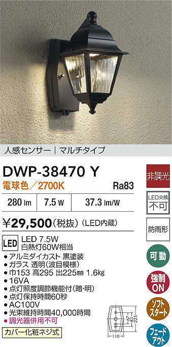 DWP-38470Y 大光電機 人感センサー付アウトドアライト (LED内蔵)