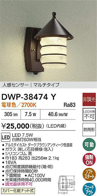 DWP-38474Y 大光電機 人感センサー付アウトドアライト (LED内蔵)
