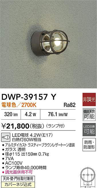DWP-39157Y 大光電機 アウトドアライト (ランプ付)