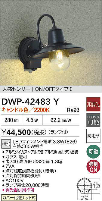 DWP-42483Y 大光電機 人感センサー付ブラケット (ランプ付)