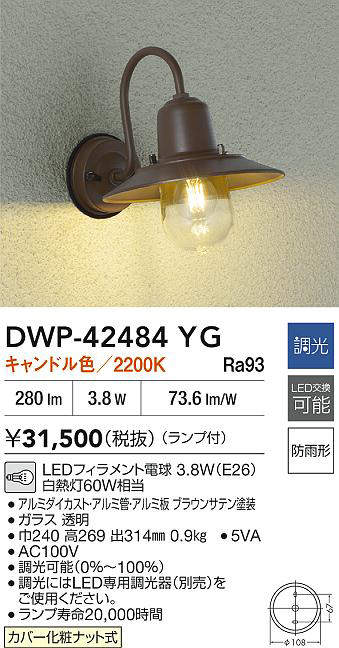 DWP-42486YG 大光電機 アウトドアライト (ランプ付)