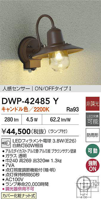 DWP-42485Y 大光電機 人感センサー付ブラケット (ランプ付)