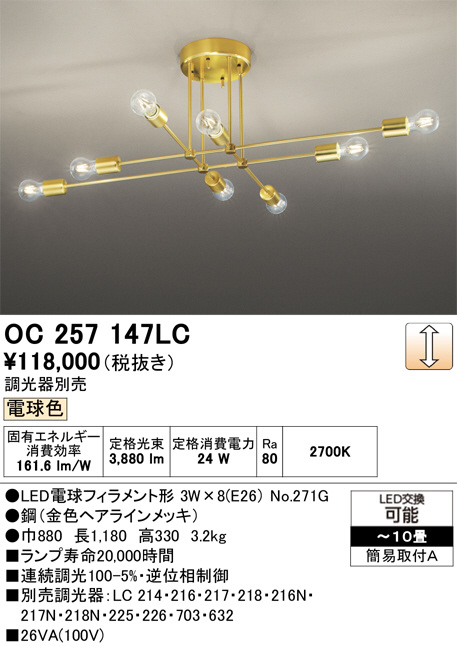 OC257147LC オーデリック LEDシャンデリア 〜10畳 ランプ別梱包 調光器別売 (代引き不可)