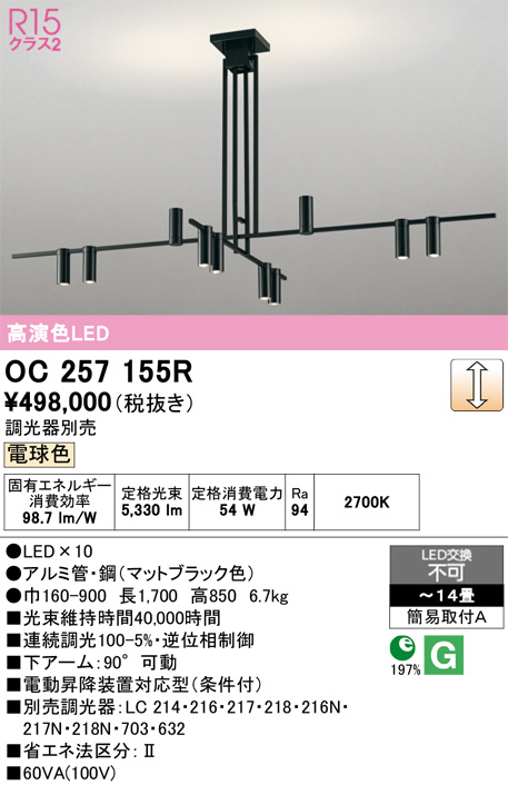 OC257155R オーデリック LEDシャンデリア 〜14畳 調光器別売 (代引き不可)