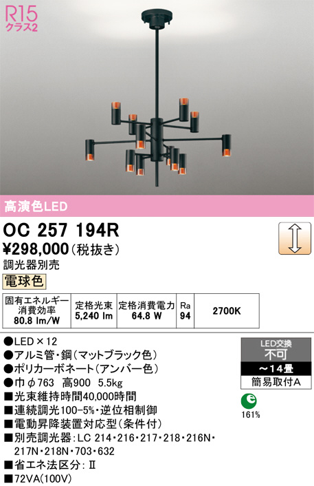 OC257194R オーデリック LEDシャンデリア 〜14畳 調光器別売 (代引き不可)