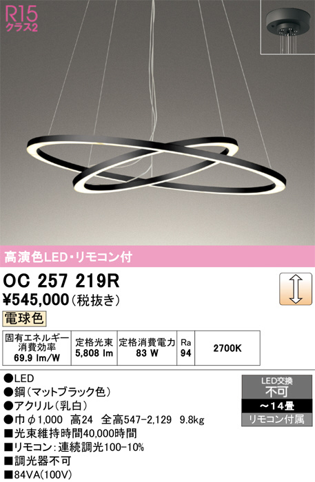 OC257219R オーデリック LEDシャンデリア 〜14畳 (代引き不可)