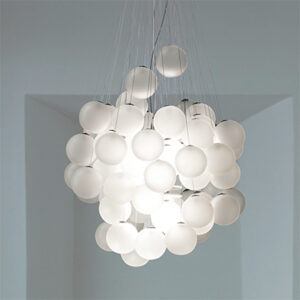 ストキャスティックは、雲を成すように集められたガラスの球体が内側からの光を反射することで、ひとつの光の彫刻のような存在感を空間にもたらします。伝統的なクリスタルシャンデリアがシンメトリーな形である一方、ストキャスティック […]