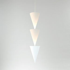 シンプルな幾何学形態で、彫刻のような作品をデザインするマイケル・アナスタシアデスの新作照明ピークス。連なる円錐が山の峰々を連想させるペンダントシリーズです。特徴的なフォルムだけでは無く、円錐の曲面に沿った美しい光のグラデ […]