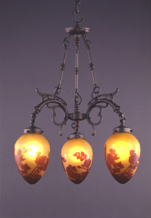 アールヌーボー/ガレ風チェーン吊り3灯シャンデリア AGL-0113DB-11