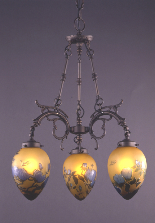 アールヌーボー/ガレ風チェーン吊り3灯シャンデリア AGL-0113DB-12
