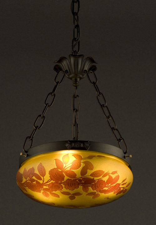 | 説明文 | 本体:総真鍮製メタルフレーム(ダークブロンズ仕様) グローブ:ルーマニア製カメオ彫りガレ風ガラス(文様:レッドローズ) 幅φ290 高390 全長510-770mm 3.5Kg |