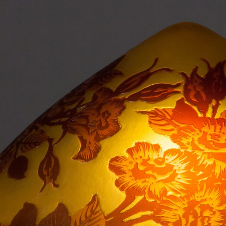 | 説明文 | ルーマニア製カメオ彫りガレ風ガラス(文様:レッドローズ) 幅φ300 高440mm 3.9Kg |