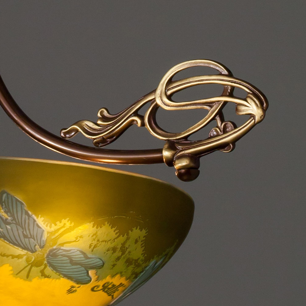 | 説明文 | 本体:総真鍮製メタルフレーム(アンティークブロンズ仕様) グローブ:ルーマニア製カメオ彫りガレ風ガラス(文様:Liblella蜻蛉) 幅φ480 高385 全長520-700mm 3.3Kg |