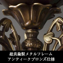 | 説明文 | 本体:総真鍮製メタルフレーム(アンティークブロンズ仕様) グローブ:ルーマニア製カメオ彫りガレ風ガラス(文様:レッドローズ) 幅φ170 高100mm 0.82Kg |