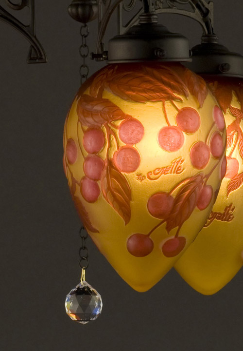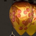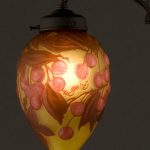 | 説明文 | 本体:総真鍮製メタルフレーム(ダークブロンズ仕様) グローブ:ルーマニア製カメオ彫りガレ風ガラス(文様:レッドチェリー) 幅φ475 高340 全長415-1200mm 4Kg |
