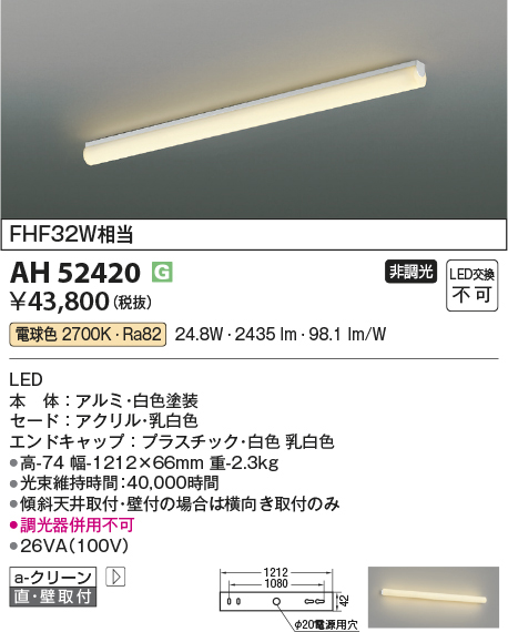 AH52420 コイズミ照明 LEDキッチンライト FHF32W相当