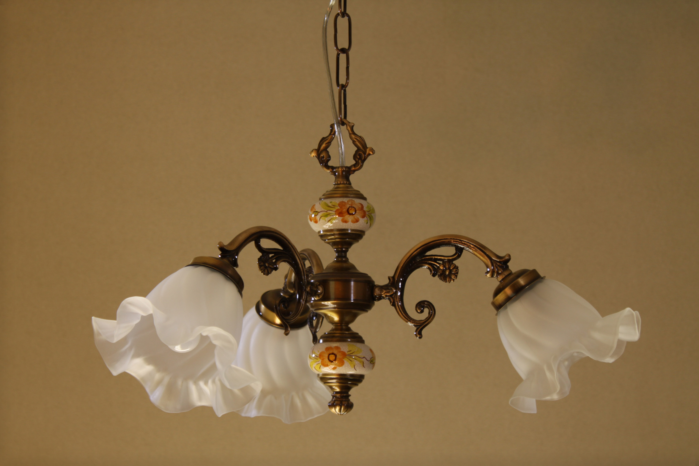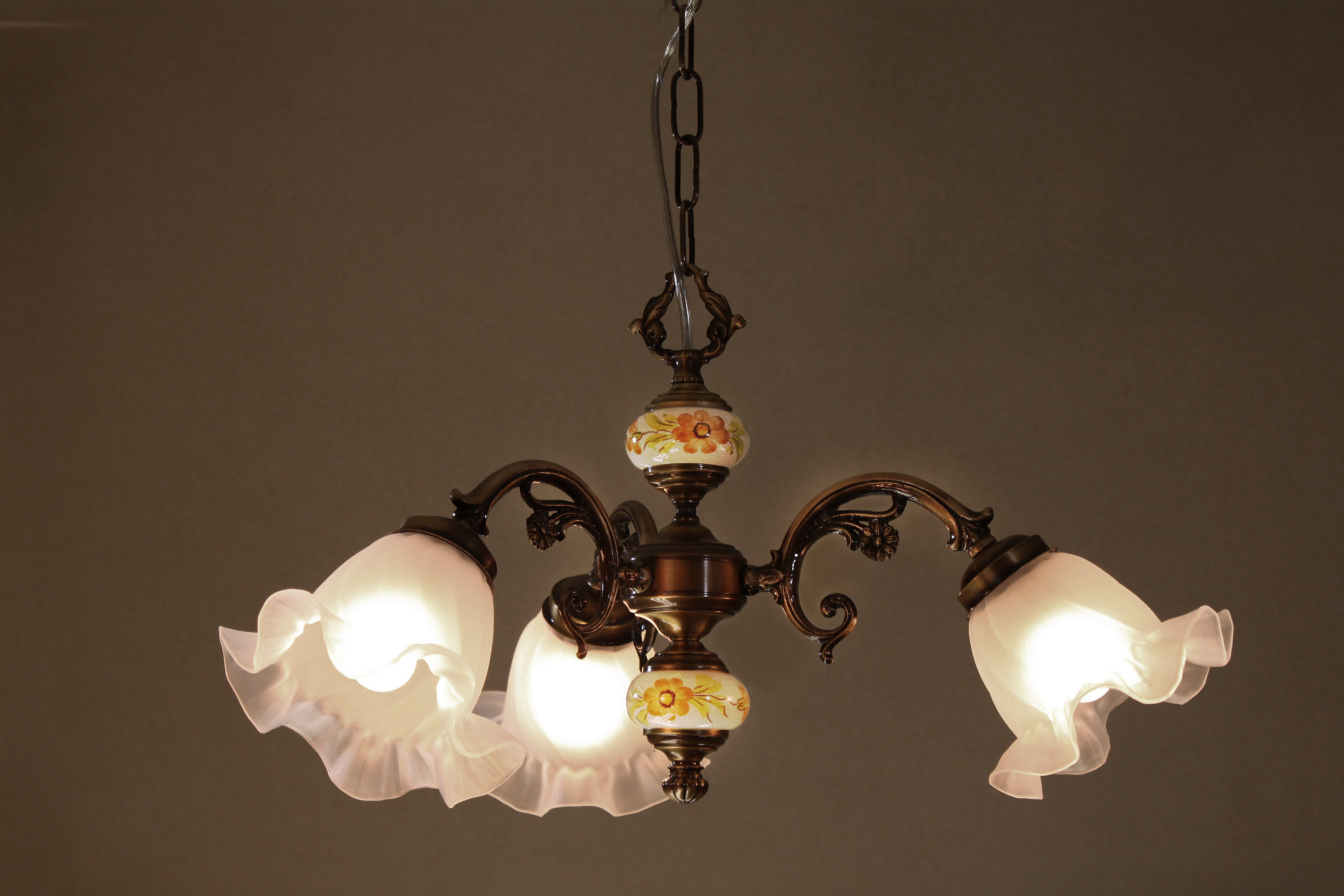 AKL201-P3-252 輸入照明 スペイン製 古美色メッキ ハンドペイント陶器真鍮3灯ペンダント