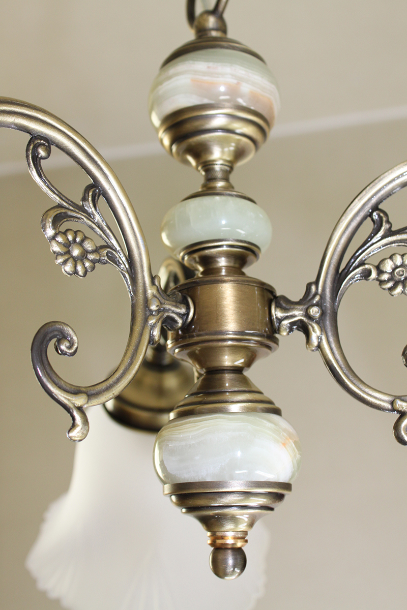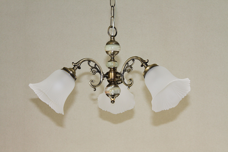 AKL202-P3-833 輸入照明 スペイン製 天然グリーンオニクス飾り3灯真鍮古美色ペンダント