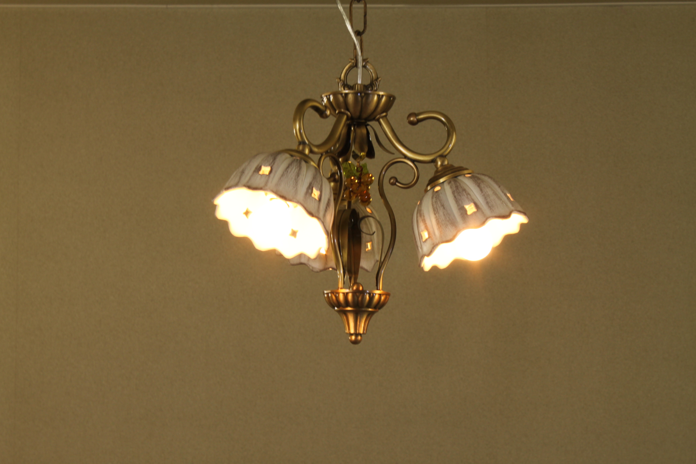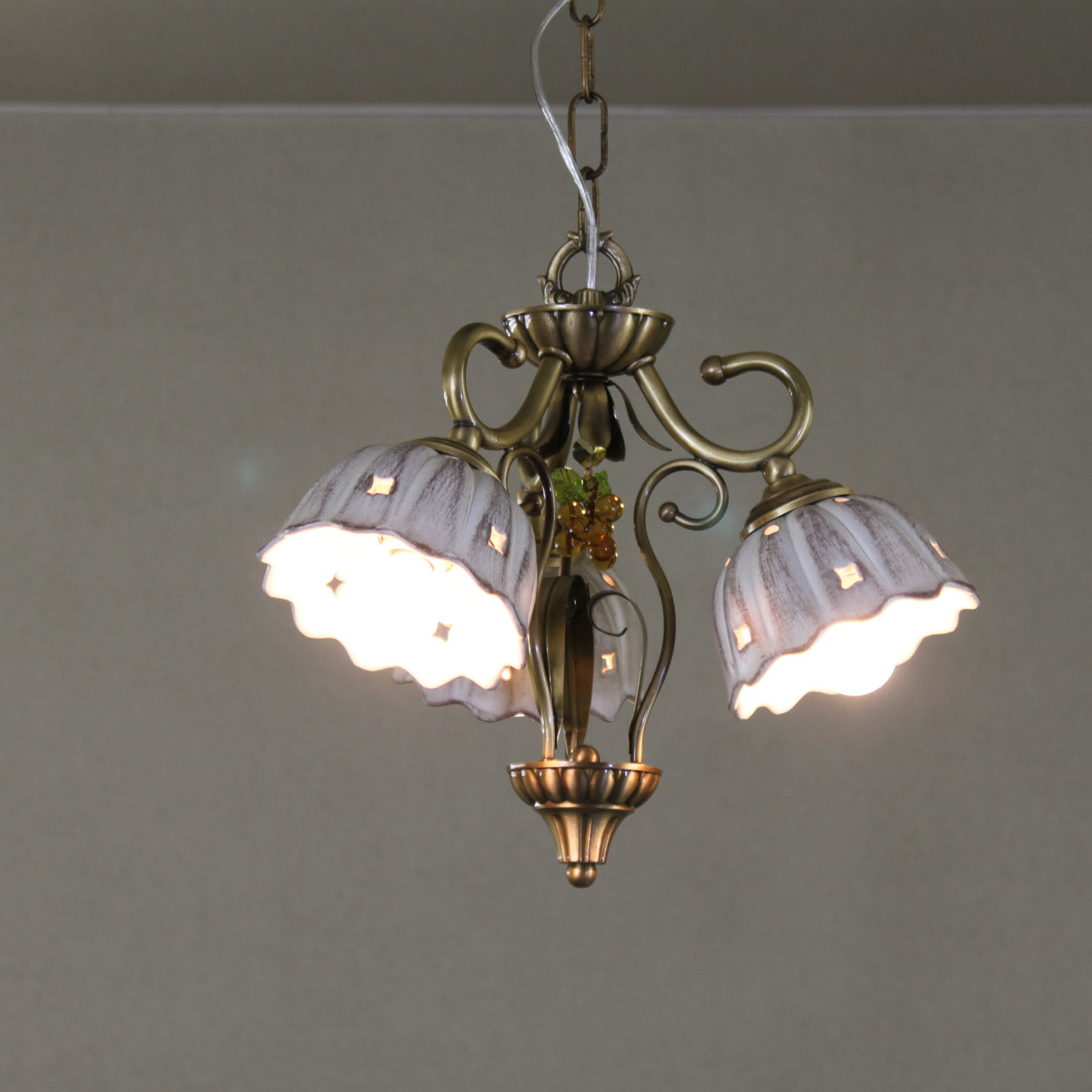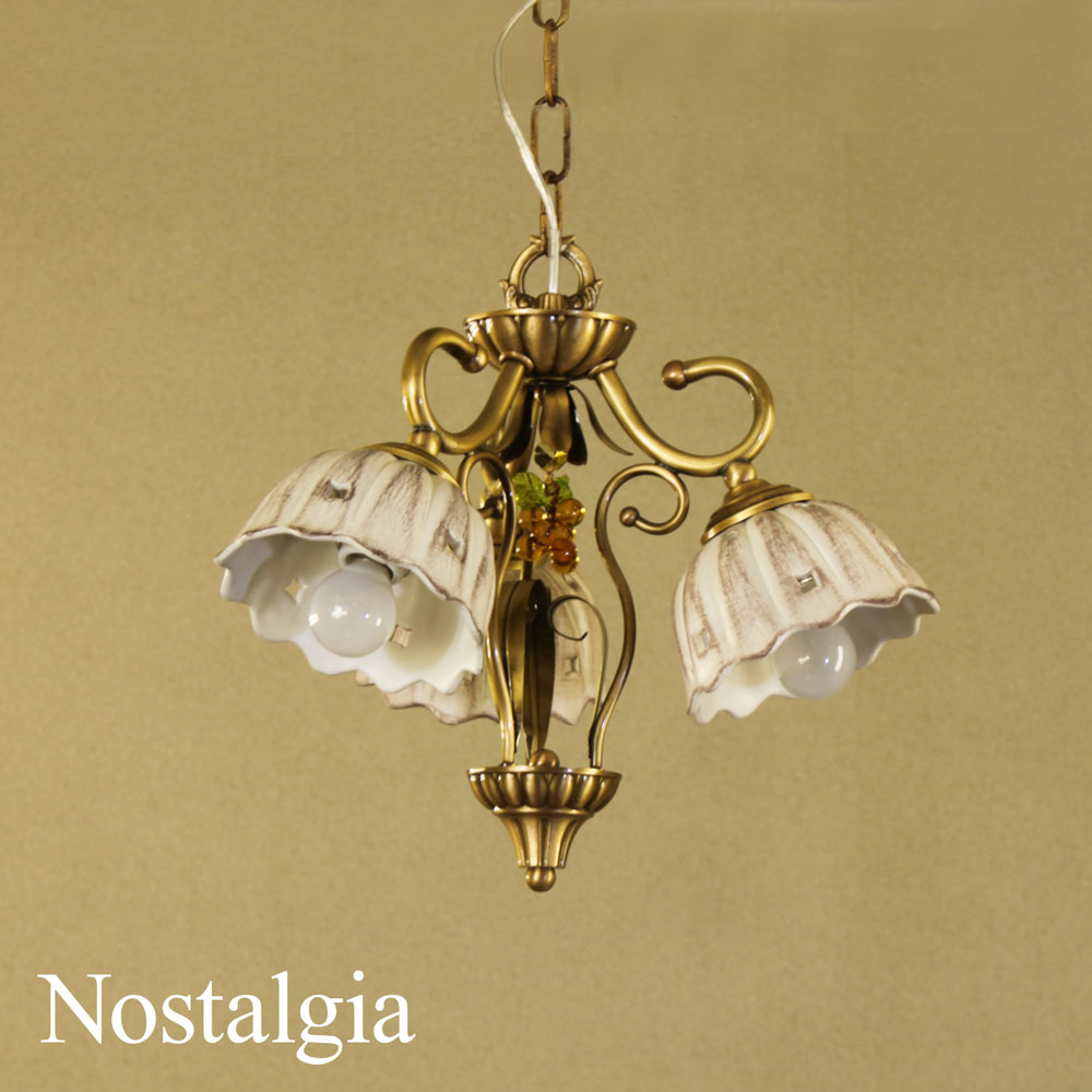 真鍮3灯陶器輸入シャンデリア ノスタルジア 4.5畳 NOS303P3-TOUKI