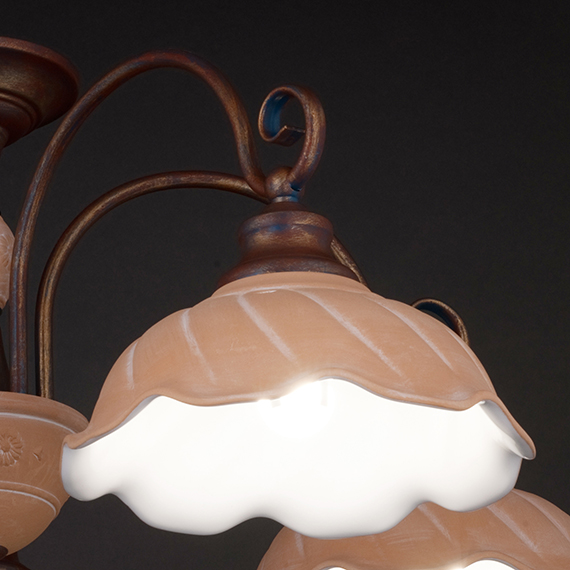 TER015-C5 輸入照明 イタリア製/陶器セード 5灯シャンデリアテラコッタ